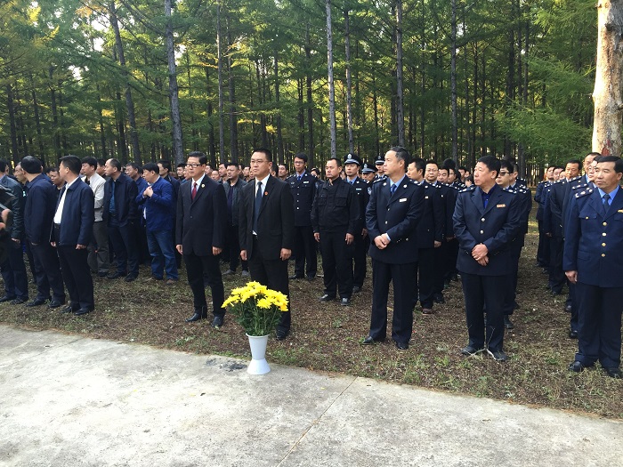 祭扫活动中,干警们列队整齐地站立在烈士纪念碑前,向革命先烈默哀、鞠躬致敬,怀着崇敬的心情向革命先烈敬献花圈,随后绕陵园一周,瞻仰了人民英雄纪念碑和烈士墓碑,整个过程朴素庄严、肃然有序。